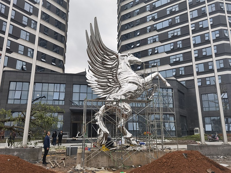 Nombre y tema:escultura de caballo de acero inoxidable